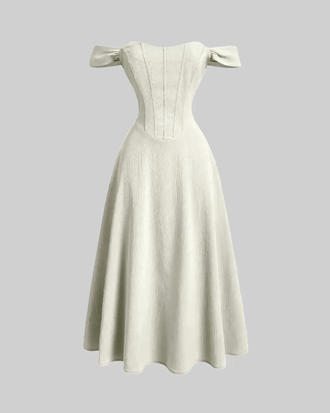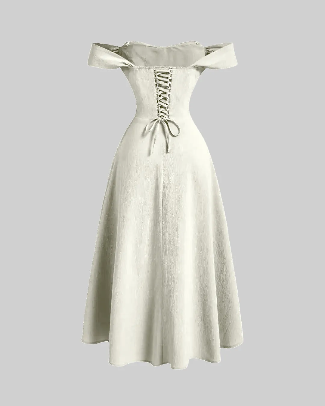 Cream Faux Fishbone Design Romantic Off-Shoulder Dress