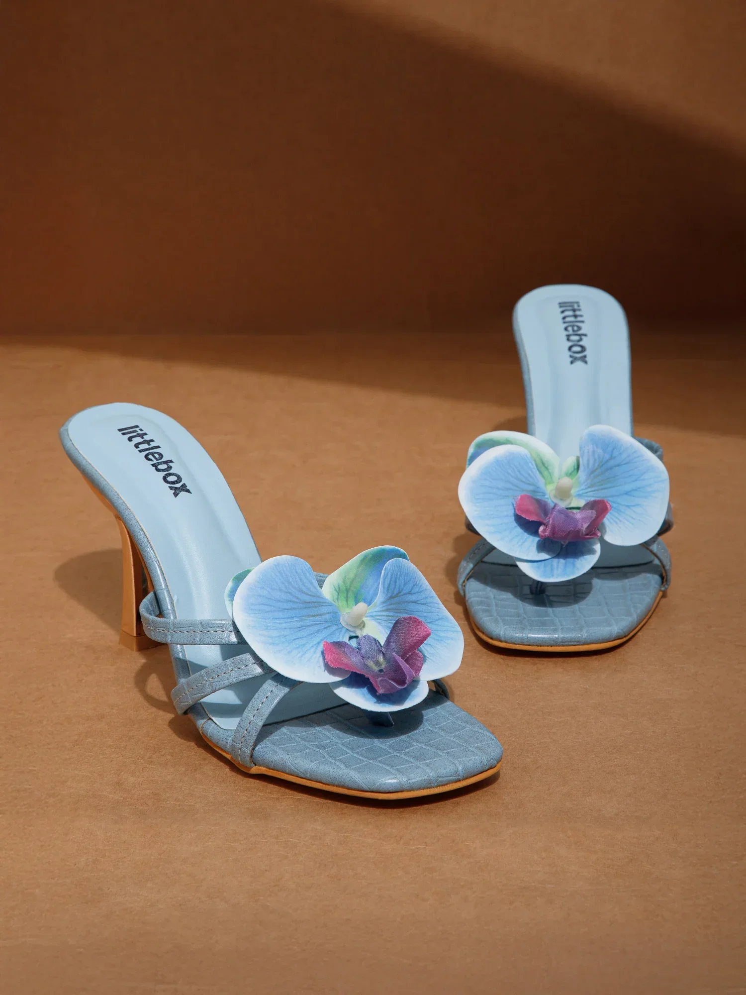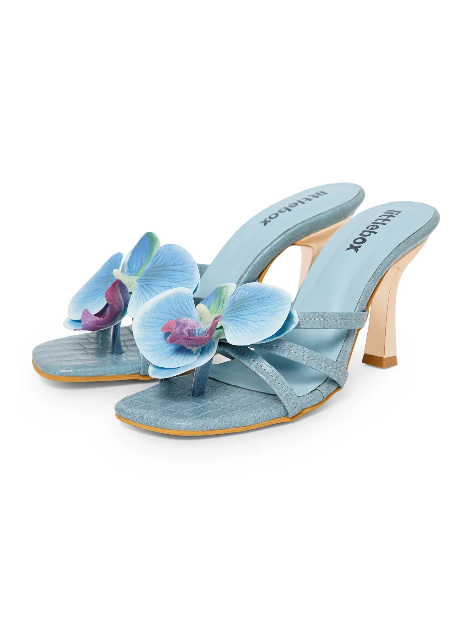 Blue Flower Decor High Heel Beach Sandals